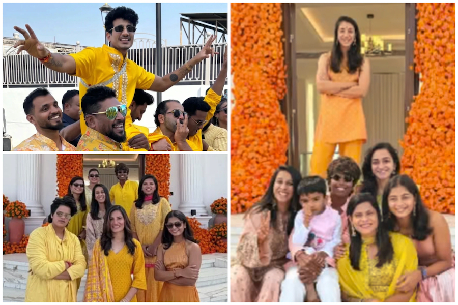 स्मृति मंधाना और पलाश मुच्छल की हल्दी सेरेमनी में छाया येलो का जा...
