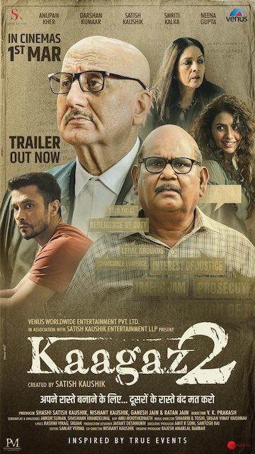 कागज़ 2 का पहला आधिकारिक ट्रेलर रिलीज़ हो गया हैं, जिसमें अनुपम खेर, दर्शन कुमार, नीना गुप्ता, स्मृति कालरा औरदिवंगत अभिनेता सतीश कौशिक मुख्य भूमिका में हैं।