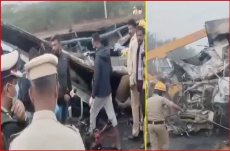 कर्नाटक में भीषण हादसा: ट्रक से टक्कर के बाद स्लीपर बस बनी आग का ...