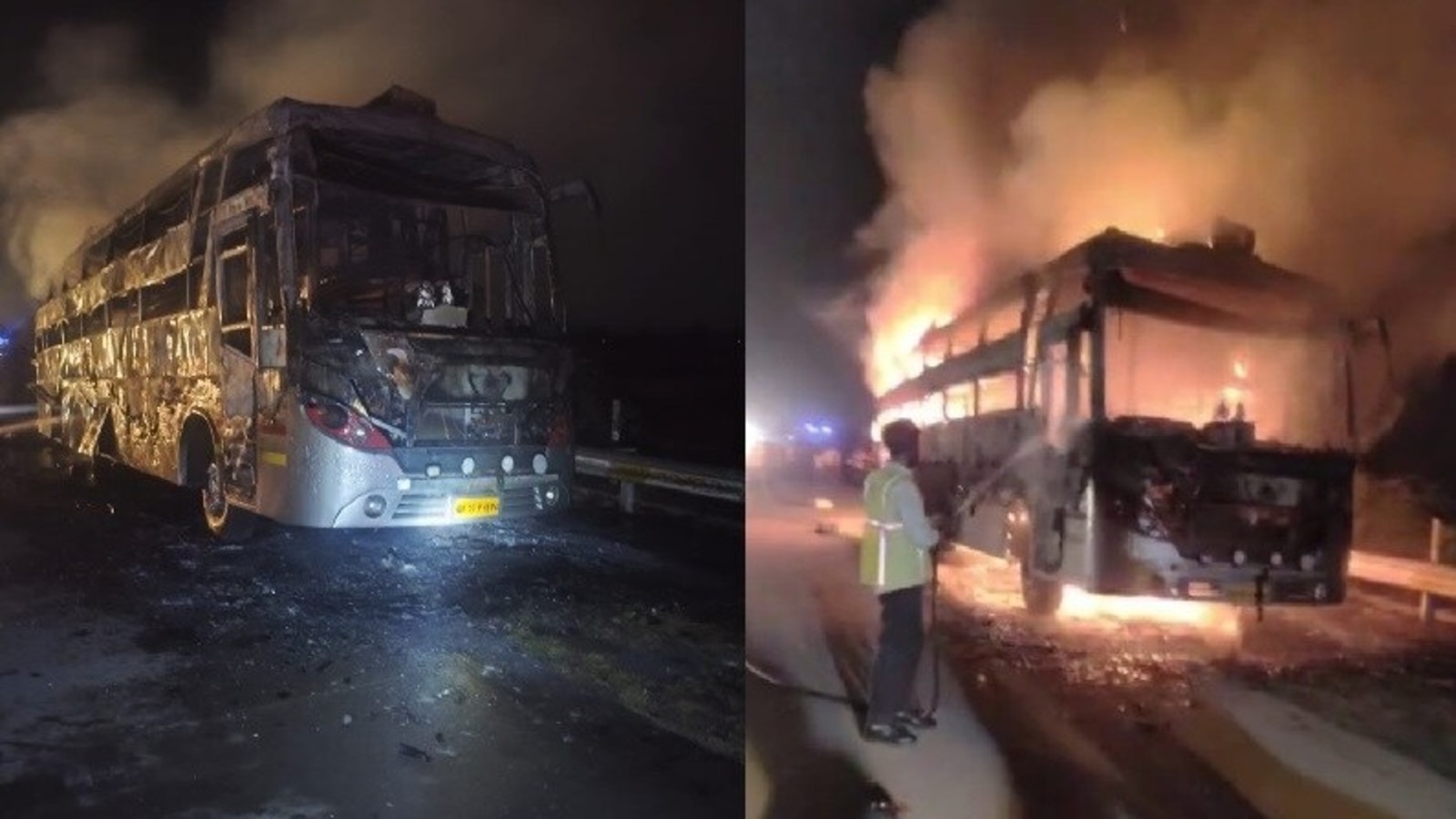 यमुना एक्सप्रेस वे पर चलती बस में लगी आग, 50 से ज्यादा यात्रियों ...