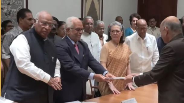 बी. सुदर्शन रेड्डी ने राज्यसभा सचिवालय जाकर नामांकन दाखिल किया। इस दौरान विपक्ष के कई बड़े नेताओं का उनका समर्थन देखने को मिला। सोनिया गांधी, राहुल गांधी, प्रियंका गांधी, शरद पवार, सपा सांसद राम गोपाल यादव, डीएमके सांसद तिरुचि शिवा, शिवसेना (यूबीटी) के संजय राउत, कांग्रेस अध्यक्ष मल्लिकार्जुन खड़गे और धर्मेंद्र यादव जैसे दिग्गज नेता उनके साथ रहे। यह गठबंधन की एकजुटता और सुदर्शन रेड्डी के प्रति व्यापक समर्थन का परिचायक है।